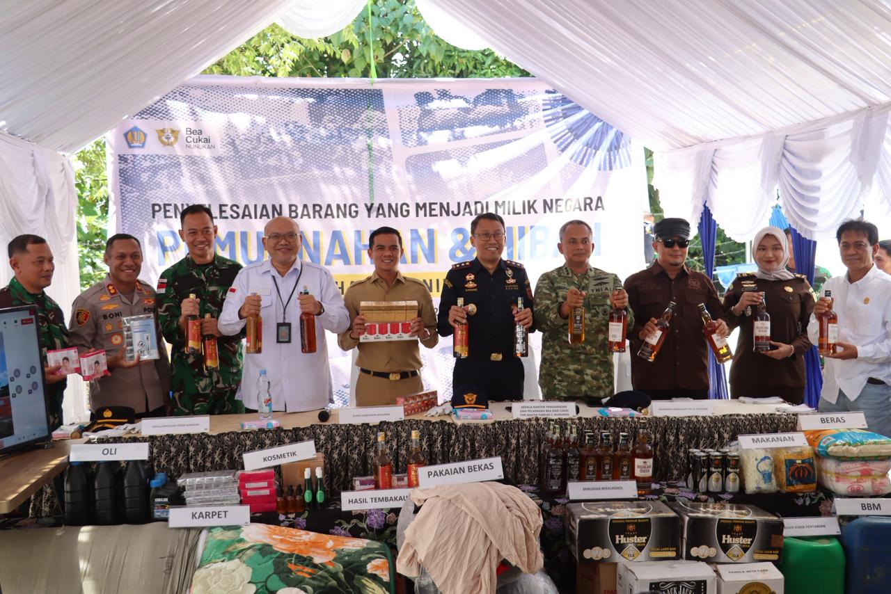 BEA CUKAI NUNUKAN LAKSANAKAN HIBAH DAN PEMUSNAHAN RIBUAN BARANG ILEGAL HASIL TEGAHAN