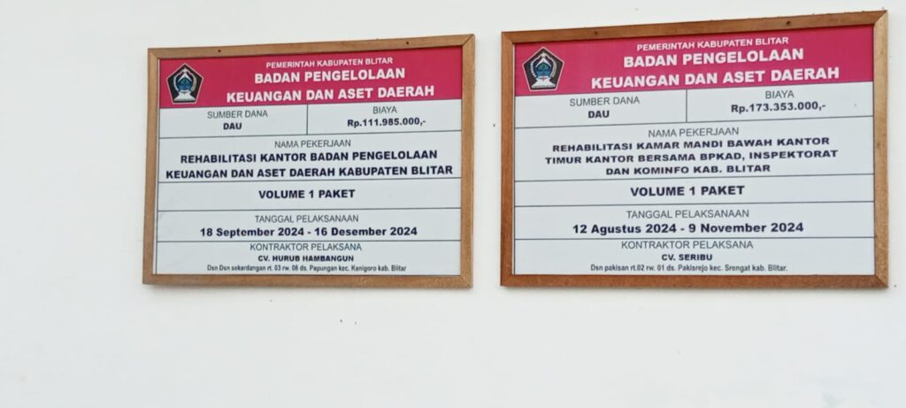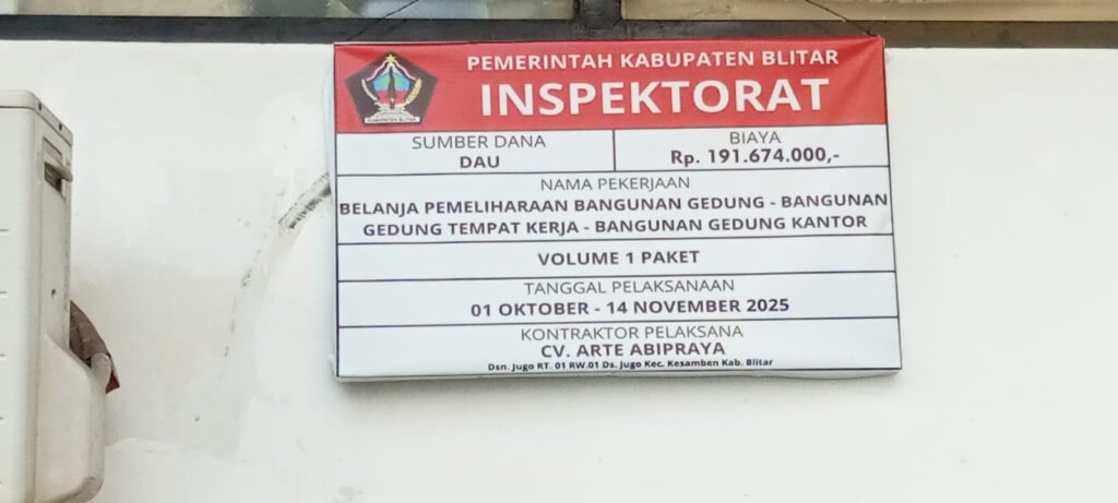 DPC LKGSAI Blitar Kritik Pemasangan Papan Proyek APBD di Lingkungan Kantor Pemkab