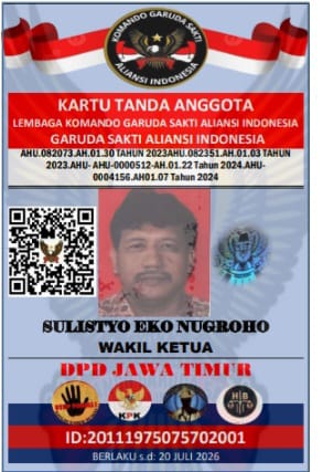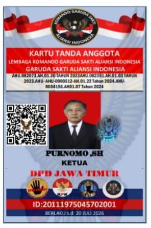 Surabaya, 21 Juli 2025 — Dalam momentum bersejarah bagi Lembaga Komando Garuda Sakti Aliansi Indonesia (LKGSAI), Surat Keputusan (SK) kepengurusan Dewan Pimpinan Daerah (DPD) Jawa Timur resmi disahkan oleh Ketua Umum Dewan Pimpinan Pusat (DPP), Edi Munadi. Dalam SK tersebut, nama Purnomo, SH ditetapkan sebagai Ketua DPD LKGSAI Jawa Timur yang baru.