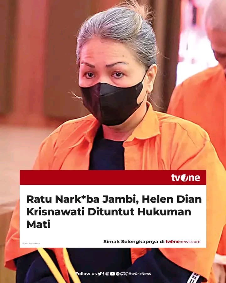 Ratu Nark*ba di Jambi, Helen Dian Krisnawati dituntut hukuman mati terkait kasus tindak pidana narkotika pada Sidang Tuntutan yang digelar pada Kamis (24/7/2025) di Pengadilan Negeri Jambi.